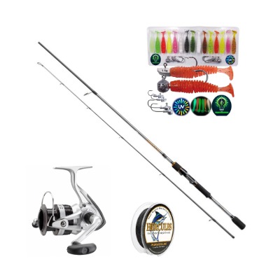 • Passende Angelrolle mit Frontbremse und eine für Barsch optimierte, geflochtene Schnur (0,08mm)